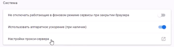 И затем в разделе «Система» нажать «Настройка прокси-сервера».