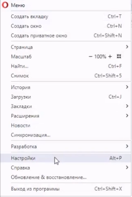 Если вы пользуетесь браузером Opera, то чтобы установить AdFix, нажмите на меню в левом верхнем углу браузера и откройте настройки.
